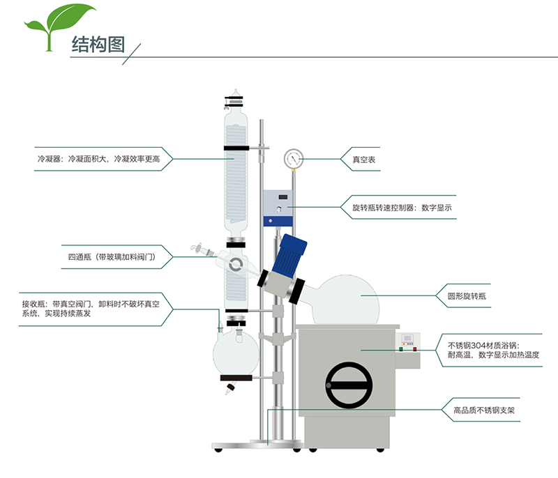 旋轉(zhuǎn)蒸發(fā)器是實(shí)驗(yàn)室回收溶劑,蒸餾提純的設(shè)備,通過(guò)恒溫加熱,在 負(fù)壓條件下旋轉(zhuǎn)形成薄膜,高效蒸發(fā),然后再冷凝回收溶媒,達(dá)到提 純分離的效果。我們可提供旋蒸整套解決方案,包括其配套設(shè)備低溫 循環(huán)器和真空泵。